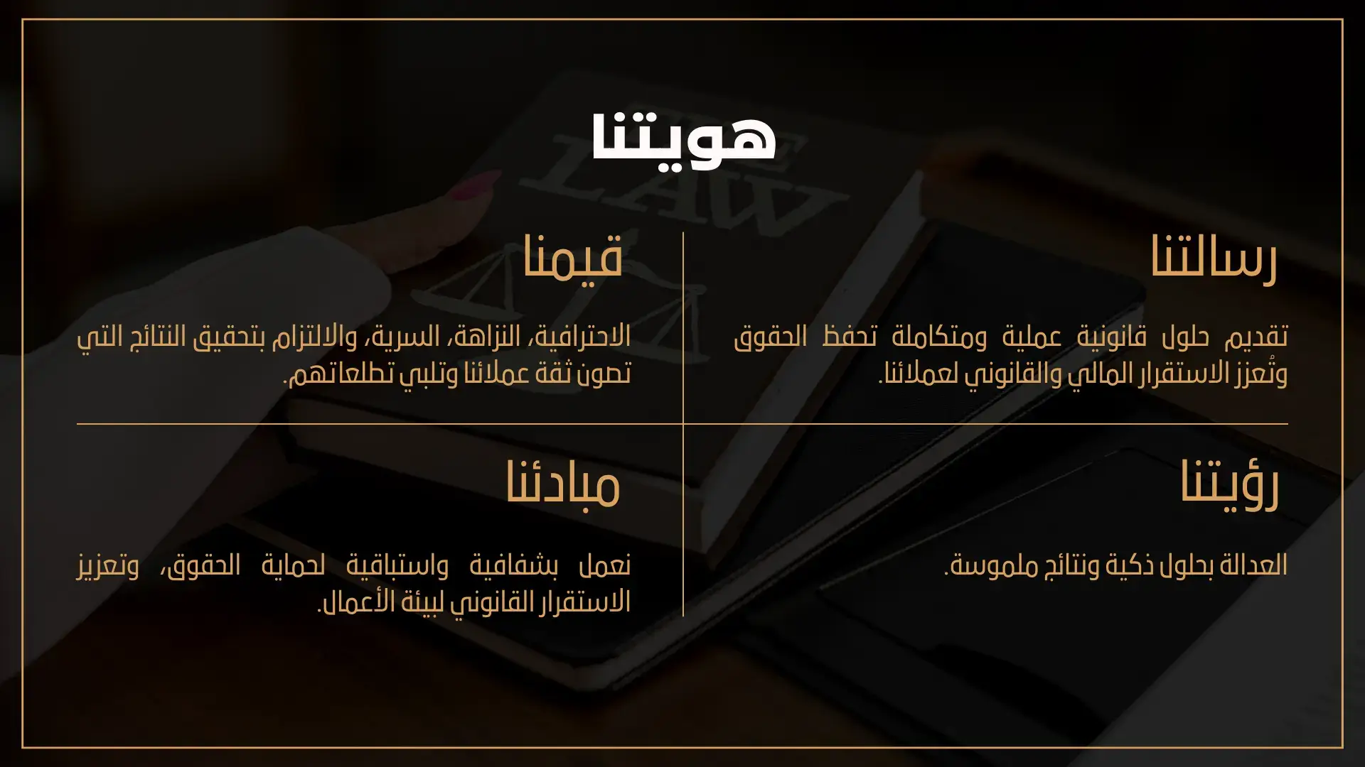 نخدم الشركات والأفراد، ونعمل كشريك قانوني طويل الأمد يهدف إلى حماية الحقوق، استرداد المستحقات المالية، ودعم استقرار الأعمال.